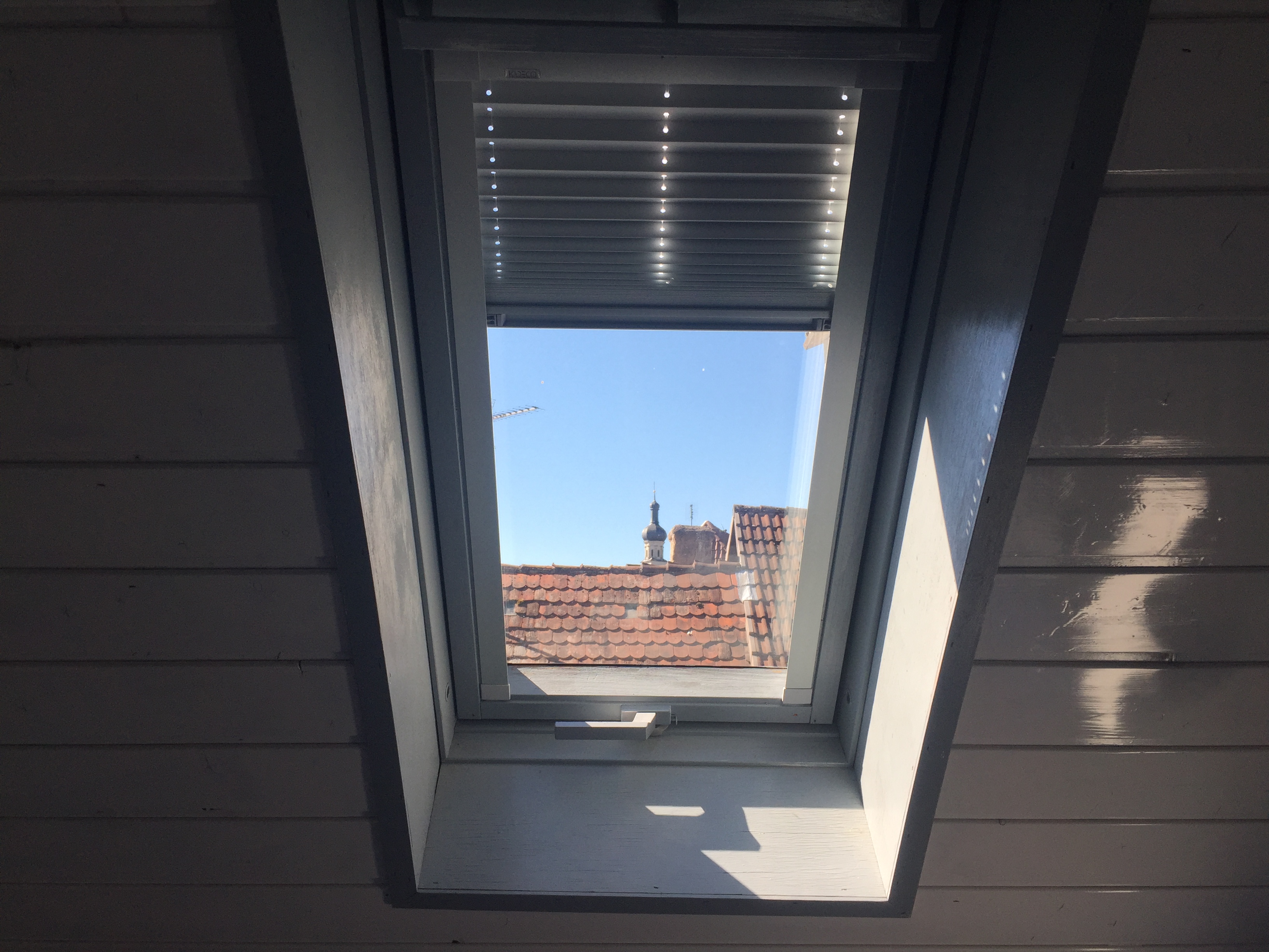 Im Zwerchgiebel des historischen Stadthauses (55 qm in der zweiten Etage öffnet sich eine romantische und moderne Wohnung über den Dächern der Altstadt, Der steilere Treppenaufgang wird mit mit einem romantischen, hellen Wohnzimmer belohnt, sanierter Dielenboden, mit (Schlaf)-Couch, Sessel, TV (Kabel), kostenfreies W-LAN für die Internetnutzung, Stereo-Anlage, Bücher aus unserer Gästebibliothek.