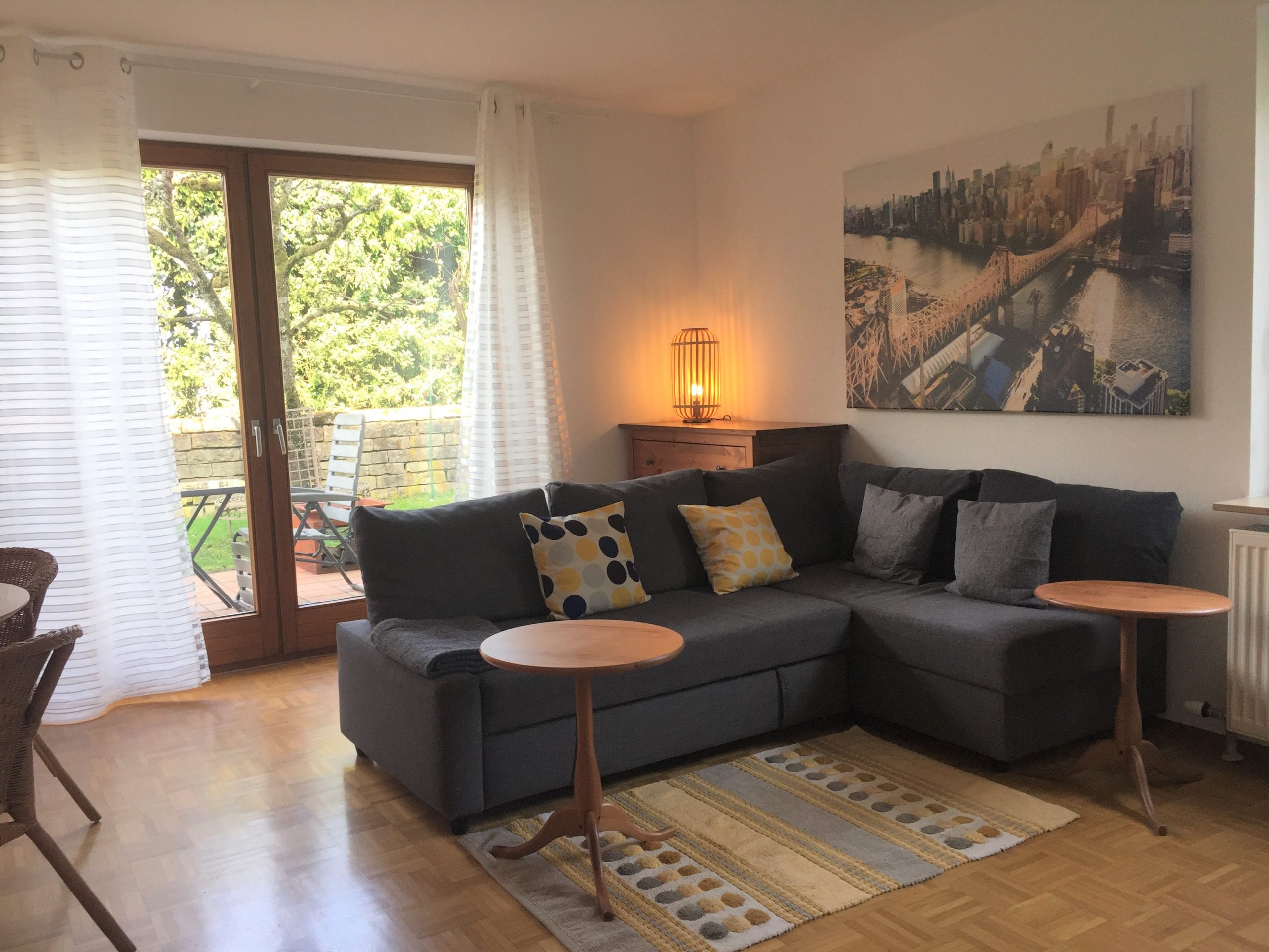 3-Sterne-Ferienwohnung im Grünen am Stadtrand von Bad Wimpfen. Diese Ferienwohnung liegt in einem ruhigen Wohngebiet am Stadtrand im Grünen (Restaurants und Shops 10 Minuten Fußweg), (45 qm), Parkett, mit kombiniertem Wohn/Schlafraum, modern eingerichtet. (Schlaf-) Eckcouch, Schreibtisch, Esstisch mit Korb-Stühlen, TV (Sat), Stereo, freies W-Lan.