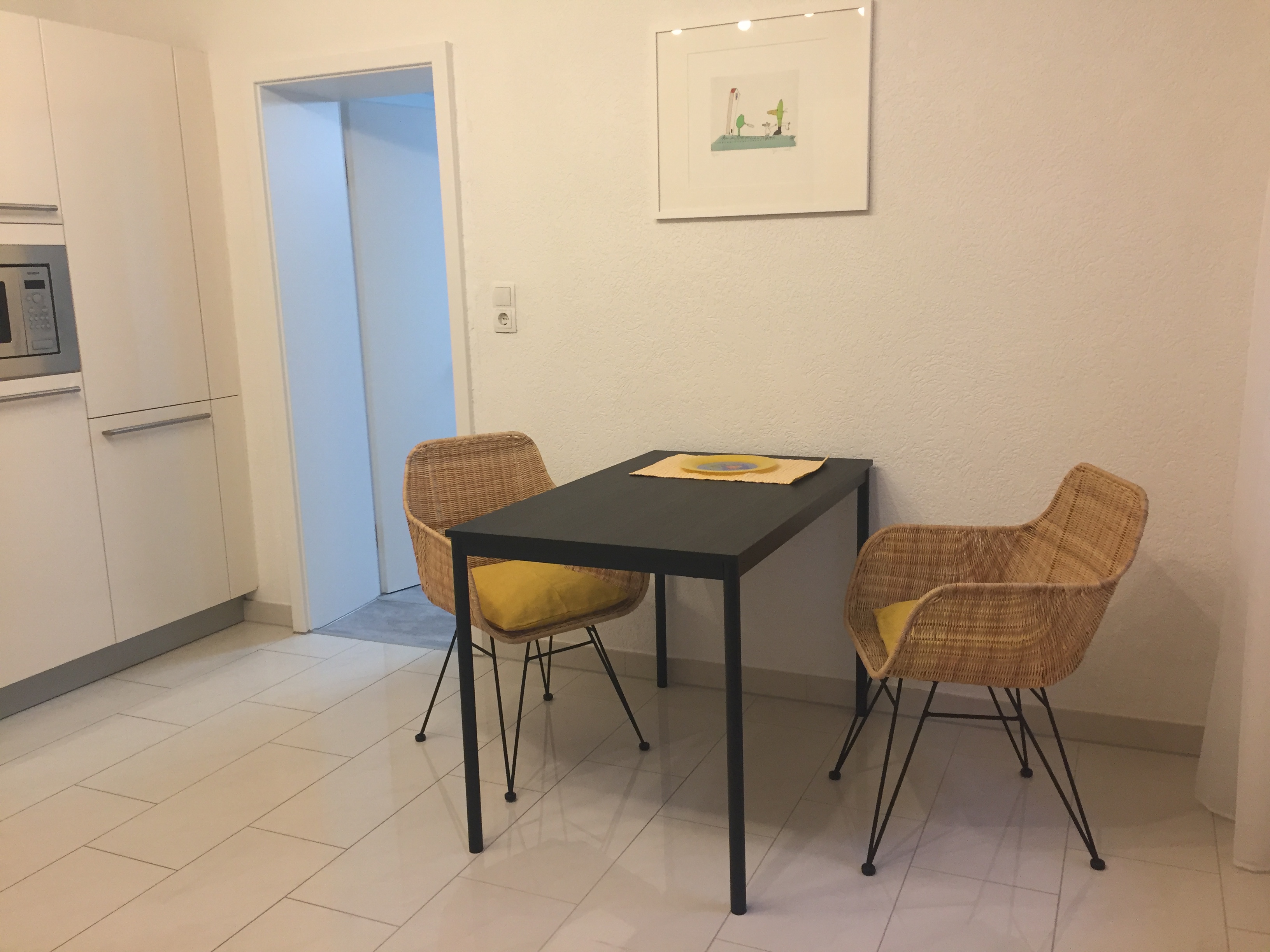 Die große Einbauküche verfügt über hochwertige Siemensgeräte wie Spülmaschine, Backofen, Mikrowelle, Kühlschrank, sep. Gefrierschrank, sowie über eine Mahlwerk-Kaffeemaschine, Wasserkocher, Eierkocher, Stabmixer, Toaster, genügend Töpfe, Pfannen, Geschirr und Gläser sowie Tisch- und Küchenwäsche sowie einen großzügigenFrühstückstisch mit bequemen Rattansesseln.